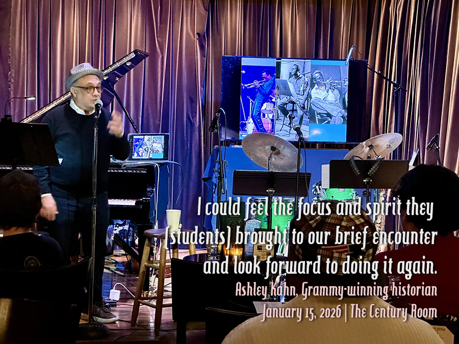 MILES DAVIS at 100 – Grammy-winning American music historian, author, journalist, and producer ASHLEY KAHN presented an afterschool show at The Century Room on Thursday, January 15, 2026, celebrating the centennial of jazz icon Miles Davis – trumpeter, bandleader, and innovator. View this post to see photos and a brief description of the presentation. This post includes a link to the YouTube playlist of two Davis tunes performed by the Morani Sanders Sextet.